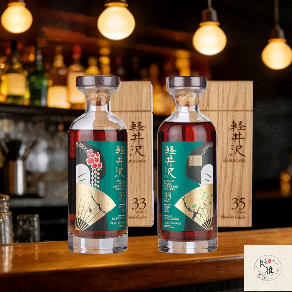 輕井澤作為日本已停產的傳奇蒸餾所,其出品向來是全球威士忌藏家競逐的頂級標的。33 年、35 年祖母綠藝妓系列,甄選蒸餾所巔峰時期的珍稀原酒,歷經數十年橡木桶慢釀,以標誌性祖母綠酒標搭配浮世繪藝妓圖案,將日本傳統工藝與威士忌釀造美學完美融合。33 年全球僅限量 170 瓶、35 年僅 265 瓶,市場流通量極度稀缺,拍賣場屢創新高,是日本威士忌收藏的殿堂級硬通貨,現階段為藏家變現套現的絕佳時機。