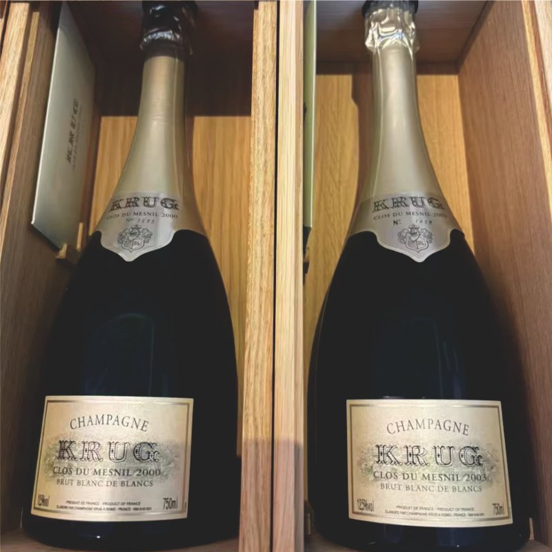 遮光包裝: 高端香檳的禮盒不僅是裝飾,更是物理遮光層。Krug 或 Salon 若「無盒」,在二手中轉市場極難賣出,回收價通常直接扣除 $300 – $1,000 不等。